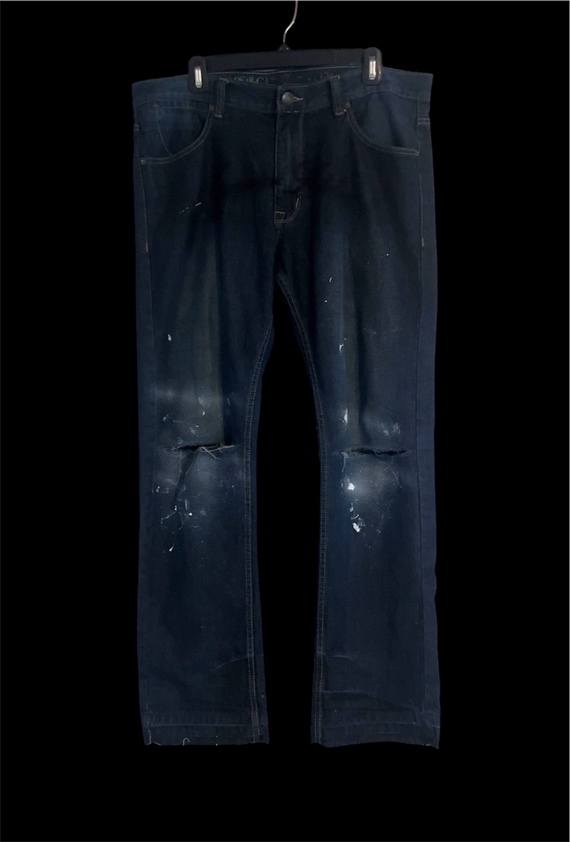 “Change” Paint Splatter Denim $35.00 Only 1 available Waist Size 34" Leg Inseam 30" Leg Opening 9" Paint Splatter on the Jeans Knee Blowouts White On the Back