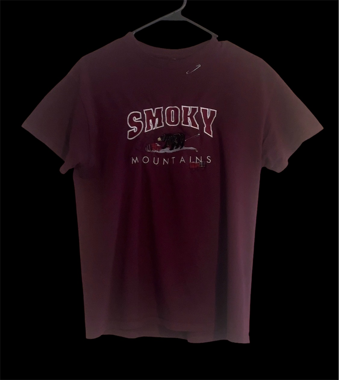 “Guerrier Atelier” Burgundy Pin Up Shirt $15.00 Only 1 available Size M Plaid Repairs/Patchwork Stainless Steel Hardware "Guerrier Atelier" on back