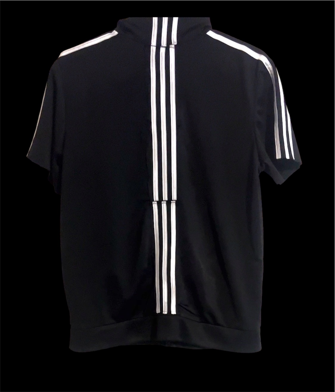 “Triple Stripe” Short Sleeve Zip Up $25.00 Poly-Cotton Blend Triple Stripes On Back Triple Strips On Arm Short Sleeve Zip Up